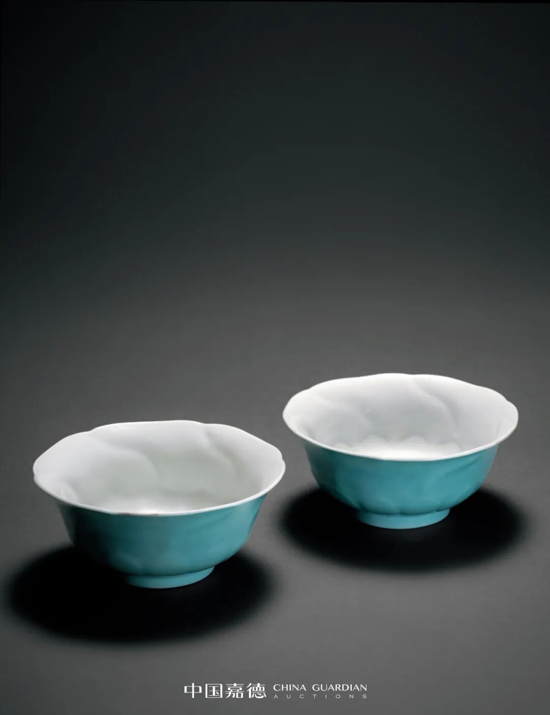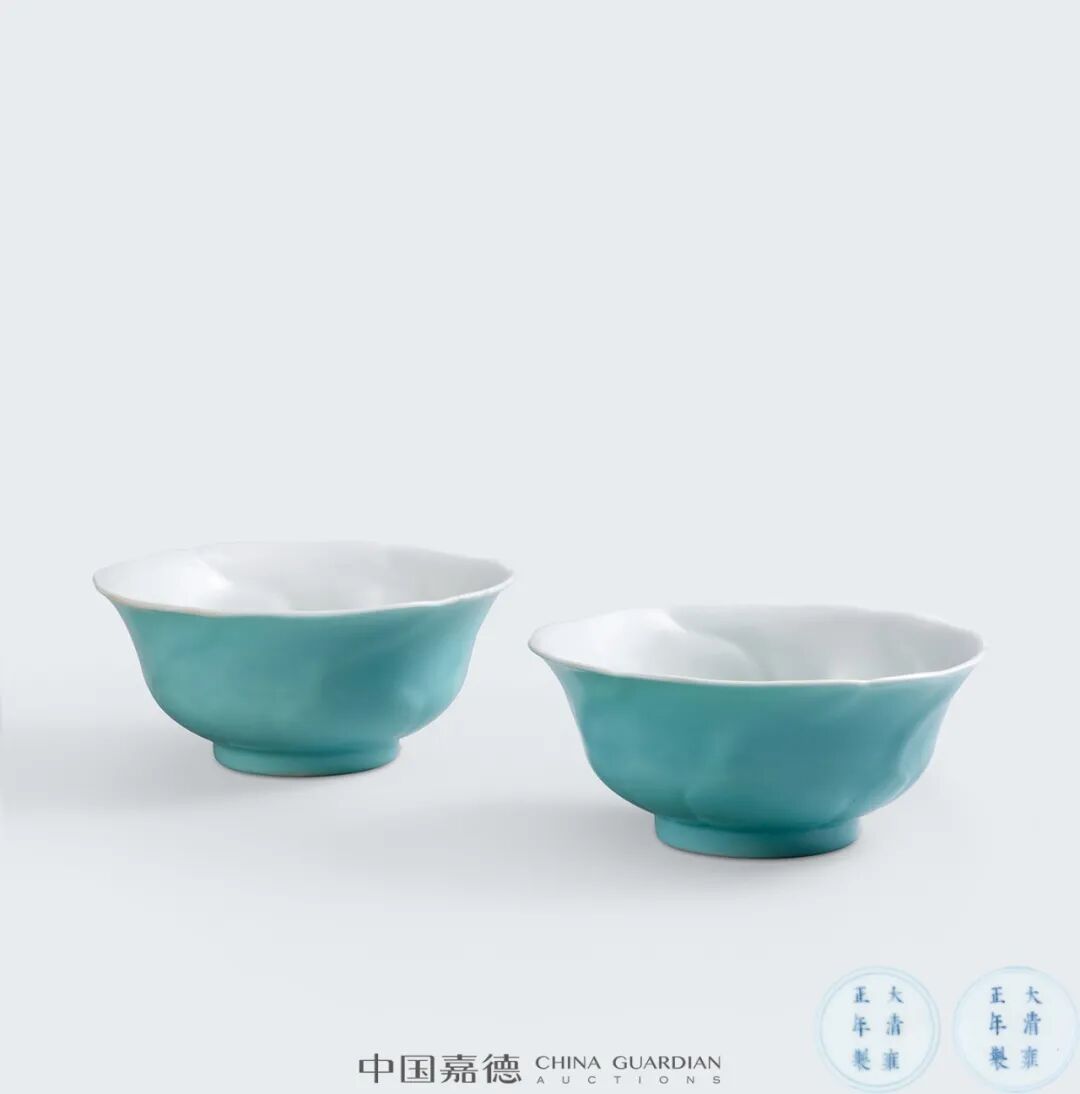 此式葵花小碗,检阅资料,还可见白釉及黄釉等品种,但若本品所施松石绿釉者极为罕见,目前仅见此一例。本品来源清晰,为卢芹斋继承人弗兰克·卡洛售与美国收藏家詹姆斯·桑顿医生,且成对保存,为雍正御窑不可多得的单色釉佳作。