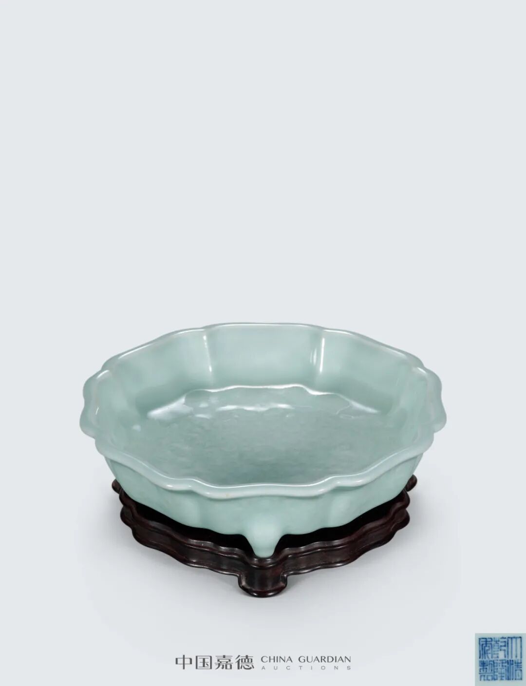 此式三足洗制作考究,此种制式始见于雍正朝,为唐英榷陶御厂之际所创,火尽薪传,至乾隆早期烧制甚盛,釉色品种更为丰富。此式花口洗突破了圆洗造型的单调,给人以耳目一新的感觉。