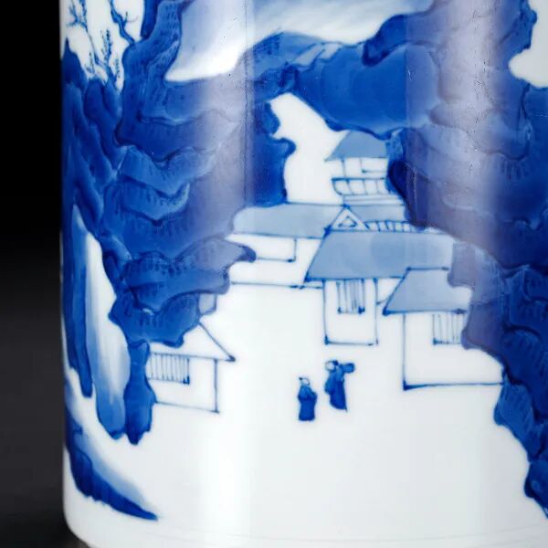 清·青花山水人物狩猎图灯笼尊