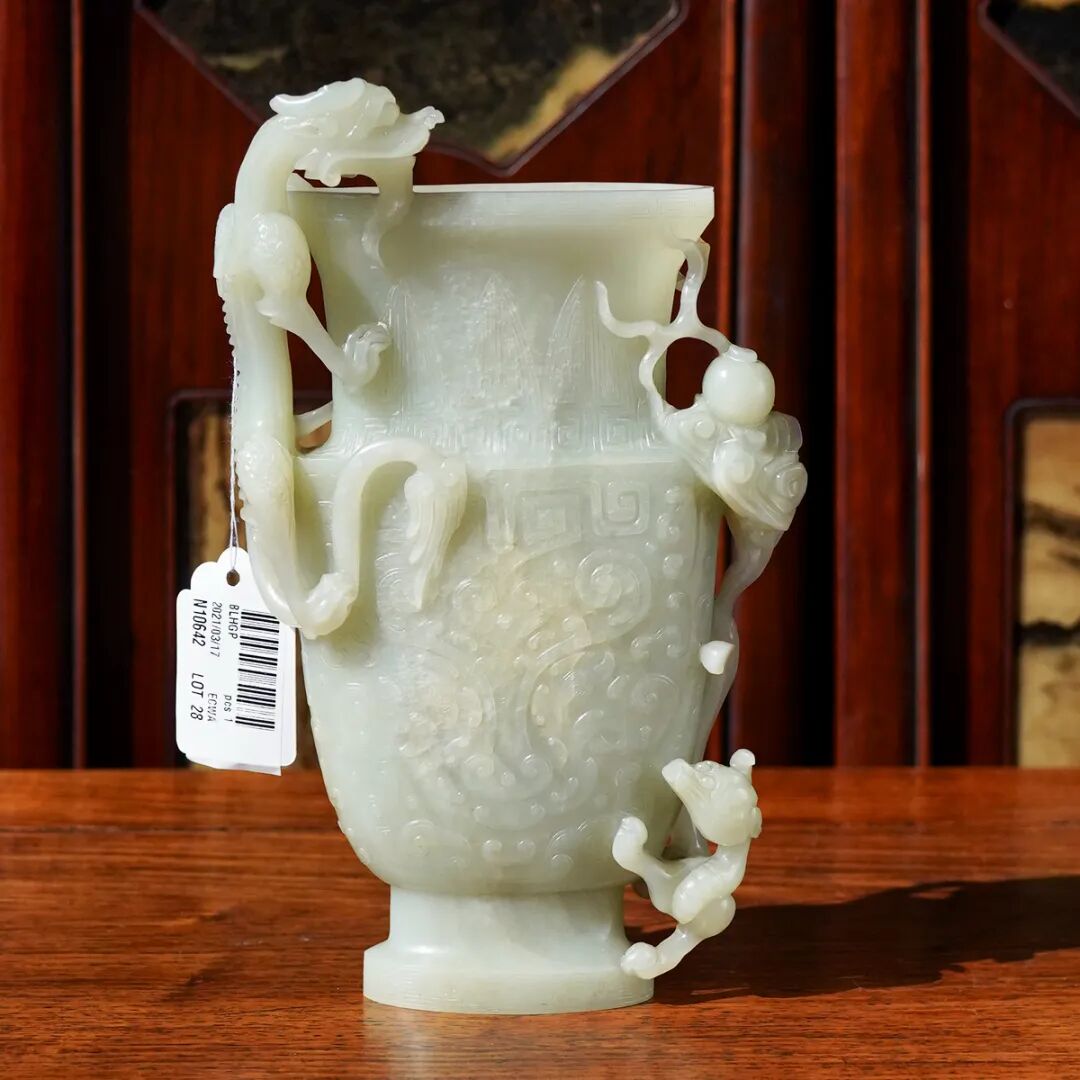 清中期·玉雕苍龙教子瓶