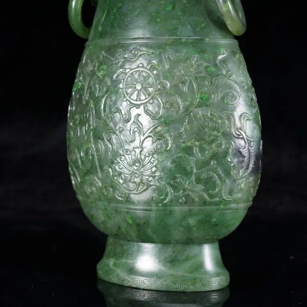 清乾隆·碧玉雕八宝纹如意耳瓶