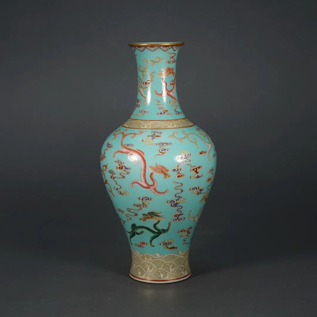 清乾隆·洋彩松石绿地云龙纹观音瓶