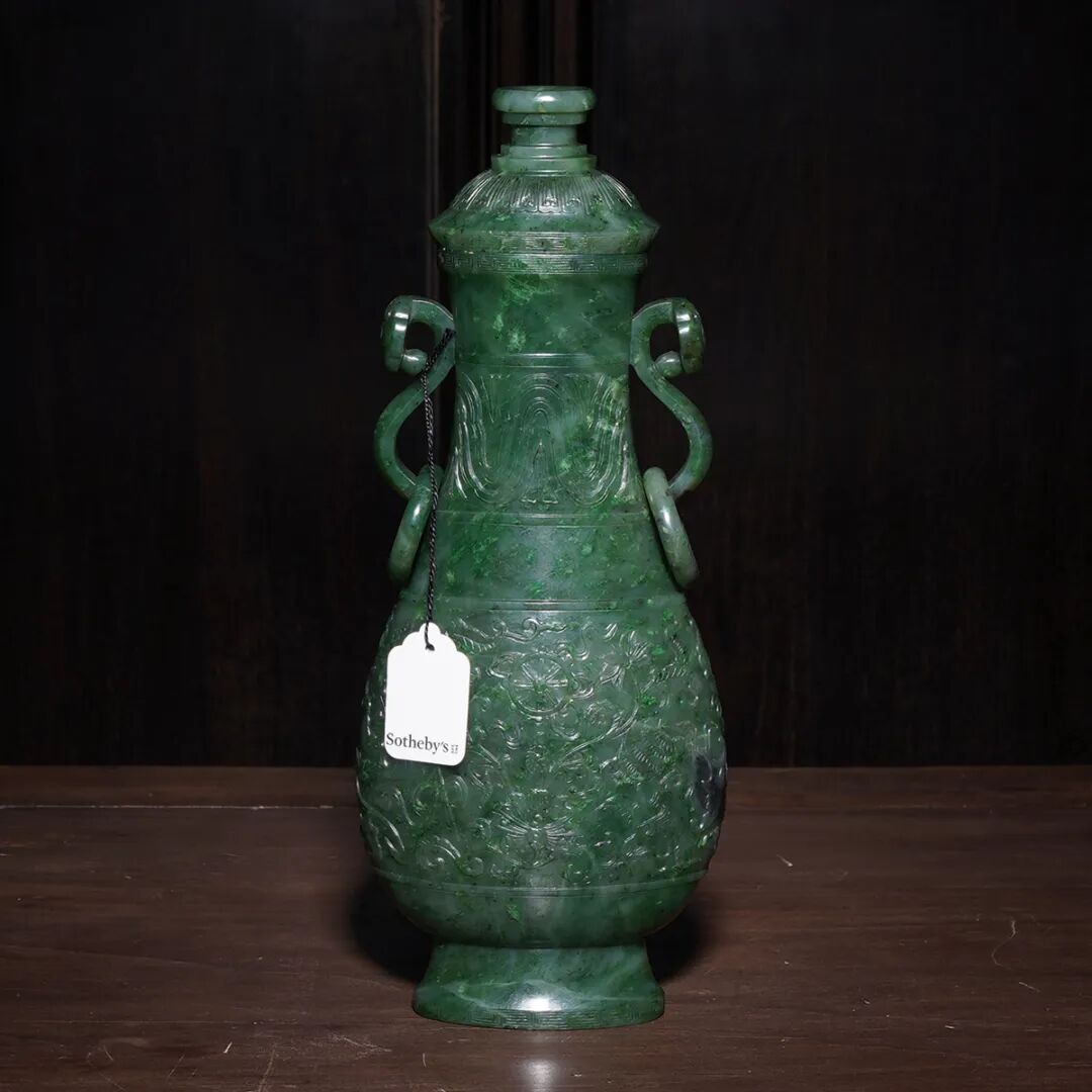 清乾隆·碧玉雕八宝纹如意耳瓶(纽约苏富比、Walter N. Rothschild 夫人收藏)