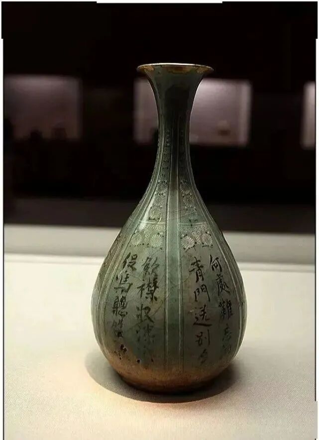 高丽青瓷的发展,受中国北方汝窑和南方龙泉窑影响最深,高丽青瓷开始呈现深沉的绿玉式格调,刻划花以菊花唐草为主要装饰纹样,造型以典雅清秀取胜,已不见宋瓷的大胆夸张。