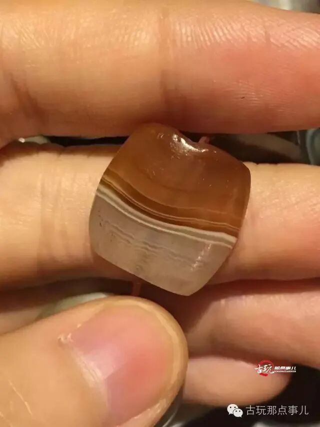 马蹄痕的形成原因可能有多种,这跟材料结构有关,这类石英质材料在受到外力作用或在环境因素影响下就容易产生半环形的痕迹,因此不能作为鉴定的绝对依据。其实高古玛瑙并不是都有马蹄痕,即便有也不是仿品那样刻意密集分布。带灰皮的高古西亚红玛瑙珠。可能是埋藏环境的水土的关系,中原高古玛瑙珠极少有灰皮现象,西亚古珠常有带灰皮的情况,灰皮有轻有重,一般盘完后灰皮都会减轻。