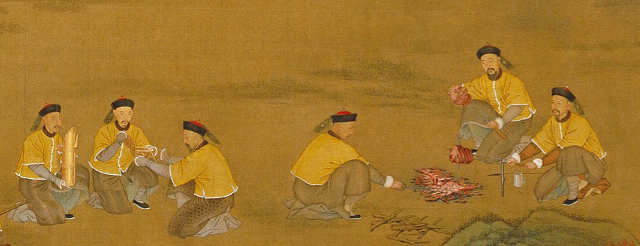 住在御营里的皇帝每天吃的是烧烤,喝的是蒙古传统奶茶,还有蒙古各部王公的进宴,这伙食,简直不要太好哦。