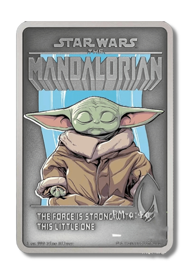 在此之前,纽埃还发行过曼达洛人-尤达宝宝纪念银币。相比较之下,这枚的还原性更高一些。