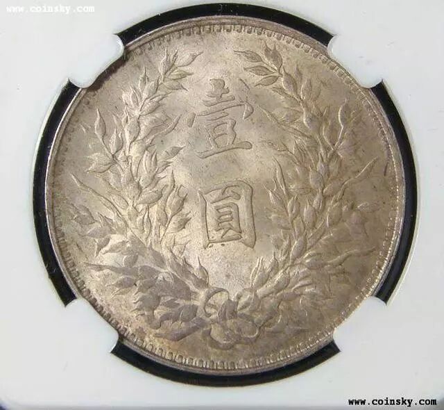 船洋曾经委托美国三大造币厂铸造,铸量大约是三千万枚,这个是有记载的。这么多船洋最终去向很难讲清楚。回流版船洋和中央版明显不同,不单是边齿形状上,从工序上说少了倒角的工序,是突兀的瓦楞齿。有人说是台湾铸造,可你看台湾五角银币,工序完整,一家造币厂没有道理生产辅币按部就班,生产主币反而偷懒。会不会是美国某个造币厂代铸的,现在还没法证实。我在报国寺A兄处买到的这枚船洋。当时他从美国朋友处买了一批船洋,我看品相都不错,就挑了一枚。镜下细看,二字后面,孙像鼻子前面有两个明显的点。拿在手里,不经意间转动一圈,发现这个币明显左背逆。当时的价格不贵,要一千元,没还价就付了款。交割完我和A兄探讨这个版别,讲了我的发现。A兄很感兴趣,想用另一枚飘带版和我换回此币,被我婉拒了。回来拍了图片拿到天堂讨论,大家也不清楚是个版别,有解释为流银,也就没再琢磨。后来送评PCGS,得到了MS64的分数。之前的诚轩和嘉德拍卖,惊奇地发现有两枚船洋,也是有这样带点的细节,位置相同,且冠名为"费城版"。一枚65分拍了一万几千块,64的拍了六千多。两家拍卖公司同时推出这个以前并没有确认的版别,自然不是偶然的事情,但至今我也不清楚他们的版别来自何种资料。因为这个缘故,我在后来的拍卖会上也刻意留意过这个版别,确实不多见,而且大多数背逆都偏向右边,我这枚向左背逆更少见些。有些版别搞出来,不过是为了多卖点钱。如果没有经得起推敲的依据,不管是拍卖公司说的,还是钱币学会说的,一样站不住脚。但是后来约定成俗,大家对此版都称为费城版,本人一不留神,成了这个版别名称的传播人。![]()