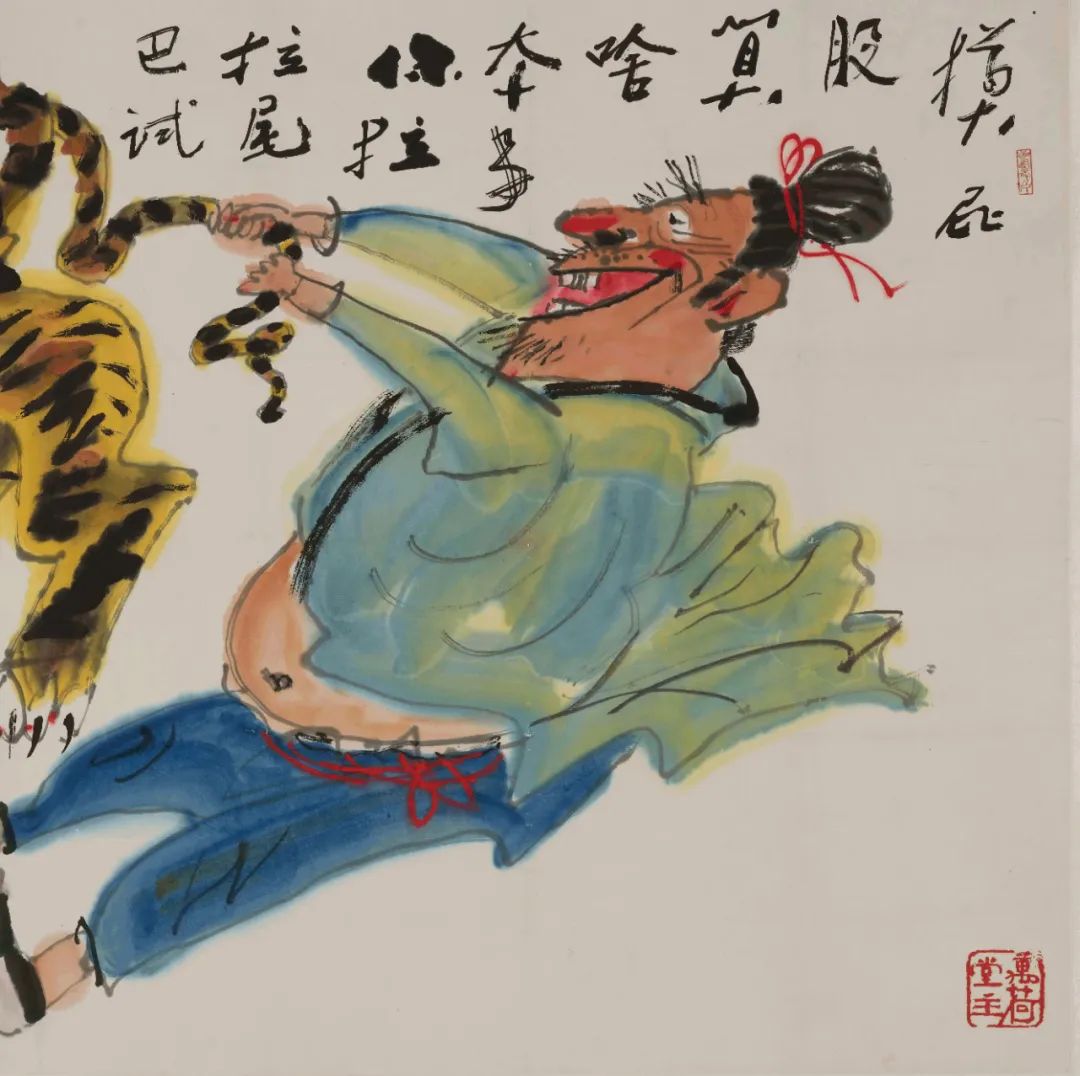 他的艺术造型不太写实,也不过分夸张和装饰。他把握着对艺术处理的分寸。他重视线条的表现力超过了对色彩、黑白、点面的追求,他的线描功夫是超群的。