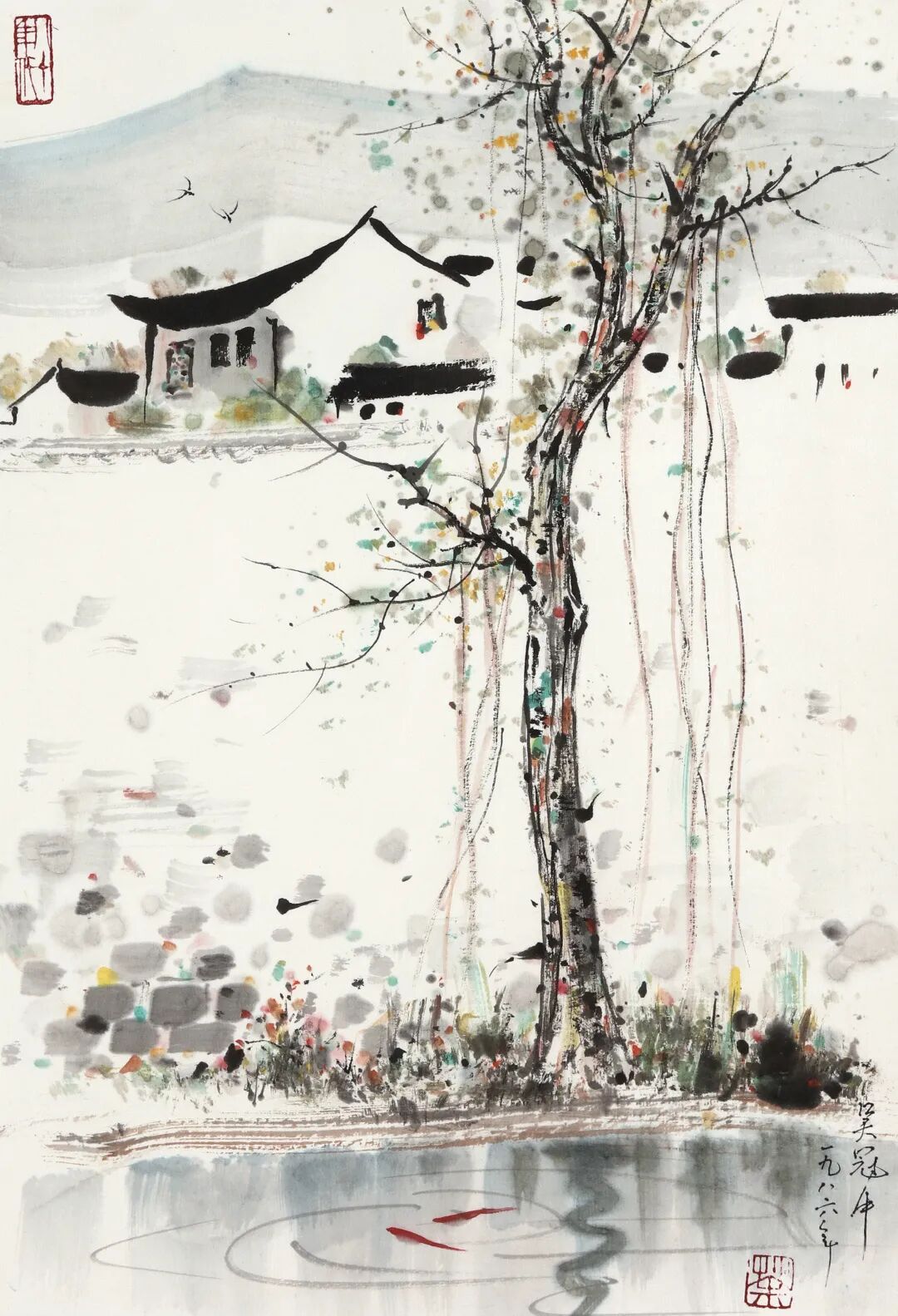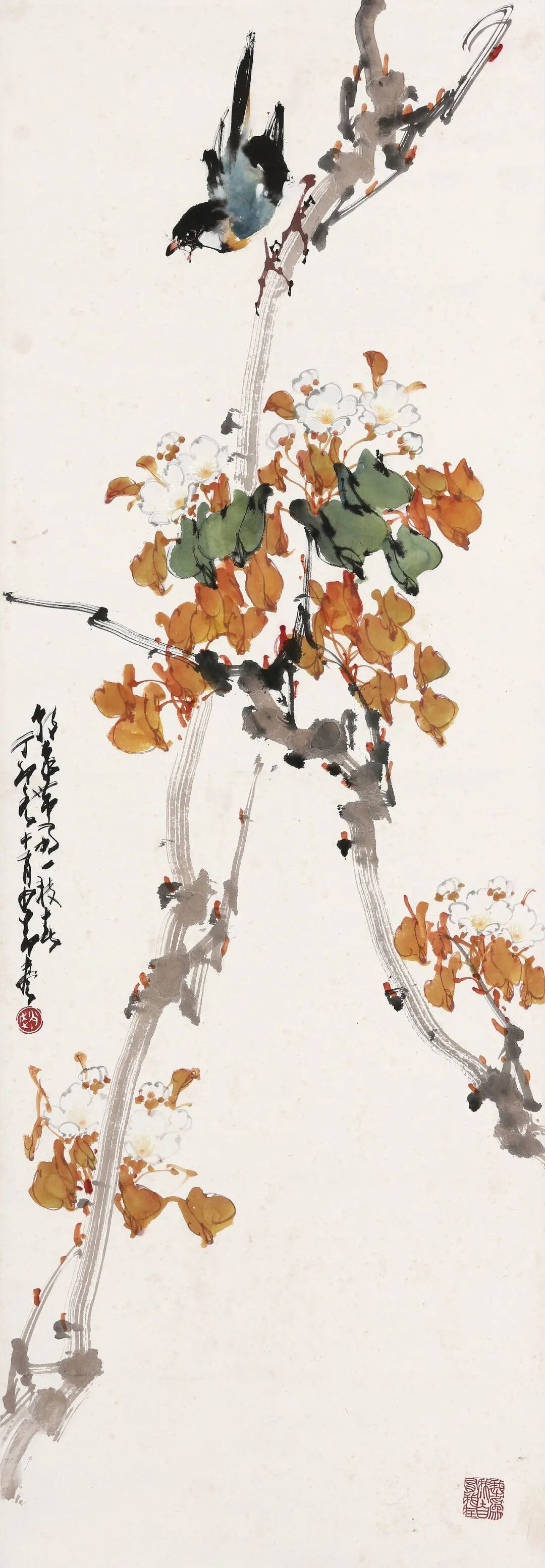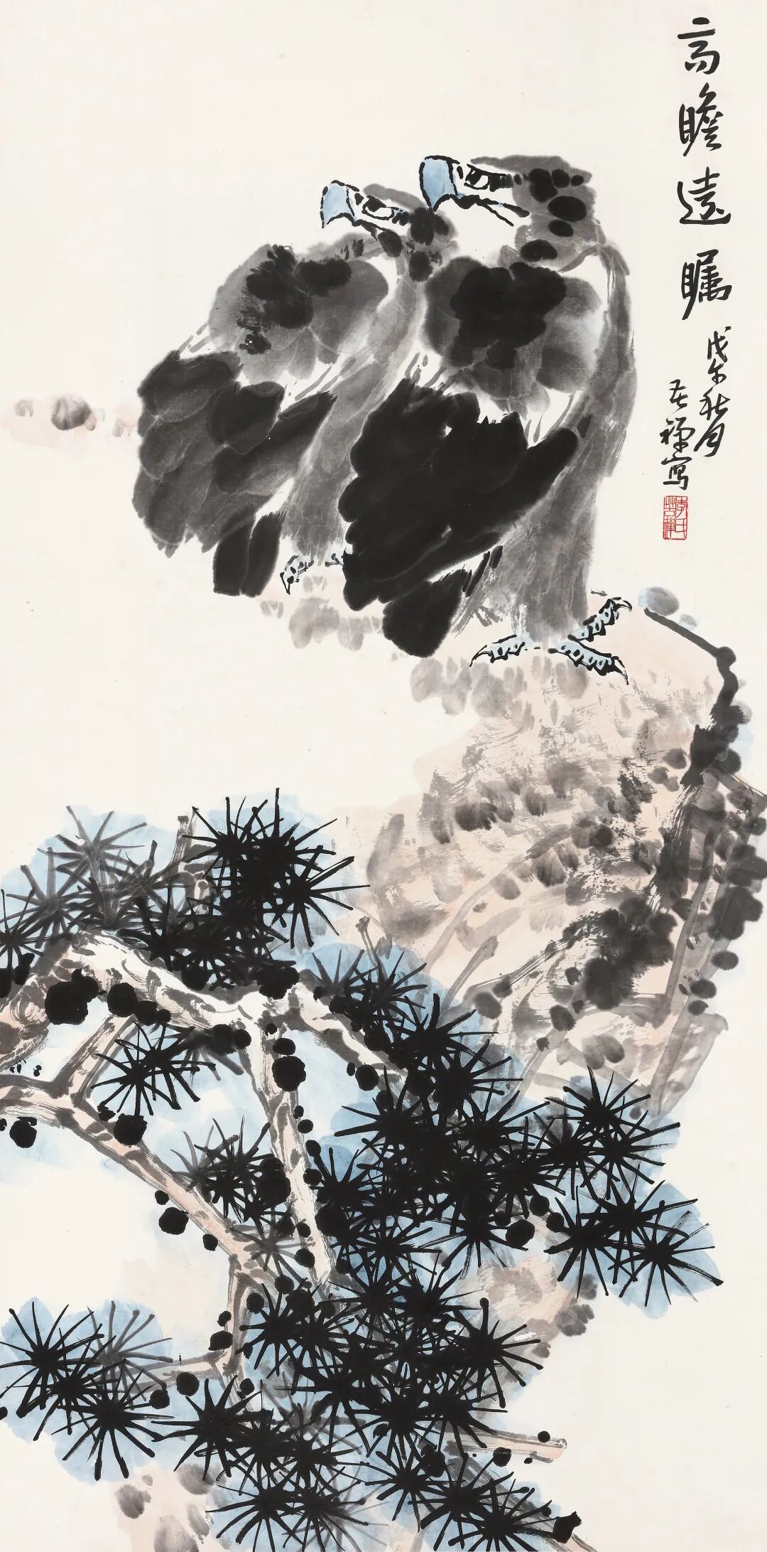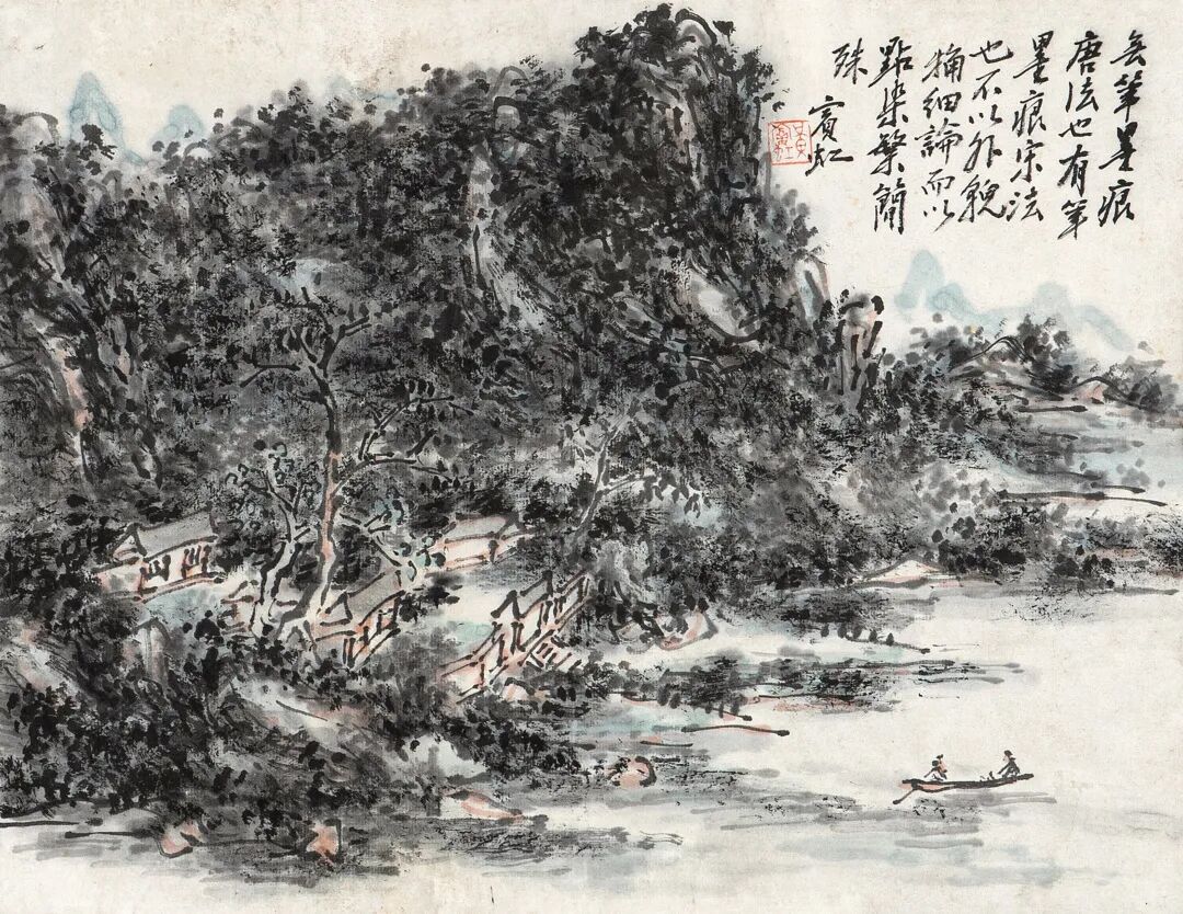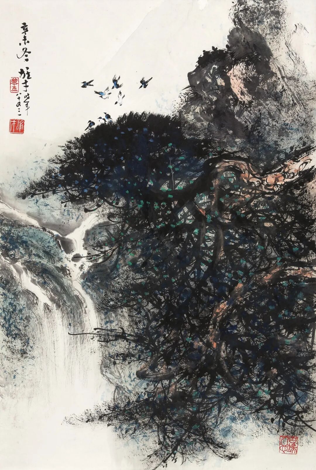 黃秋園擅長山水、人物、花鳥、書法。尤以山水畫成就最高,影響最大。今次有幸得取藏家之信任,委託此件於二〇〇四年台灣歷史博物館展覽中最為重要的封面作品上拍。在此幅作品〈聽泉〉中,構圖佈局頂天立地,整幅落墨點線密集,不留空白,所謂上不留天,下不留地。其佈局滿實在現代國畫家中無有可匹者,然茂密處透露出濃淡深淺的靈氣,故有「天滿一星」畫家的最高稱譽。他的山水往往「以元人筆墨,運宋人丘壑」,章法茂密、點線綺集、滿幅經營、繁而不亂。畫中人物雖小,然仍能形神兼備,無一懈筆。由傳統入手,開創出個人風格強烈的畫風,正如李可染評價「有石溪筆墨之圓厚、石濤意境之清新、王蒙佈局之茂密,含英咀華,自成家法」。獨創了一種有別於歷代名家的皴法新技法「秋園皴」。