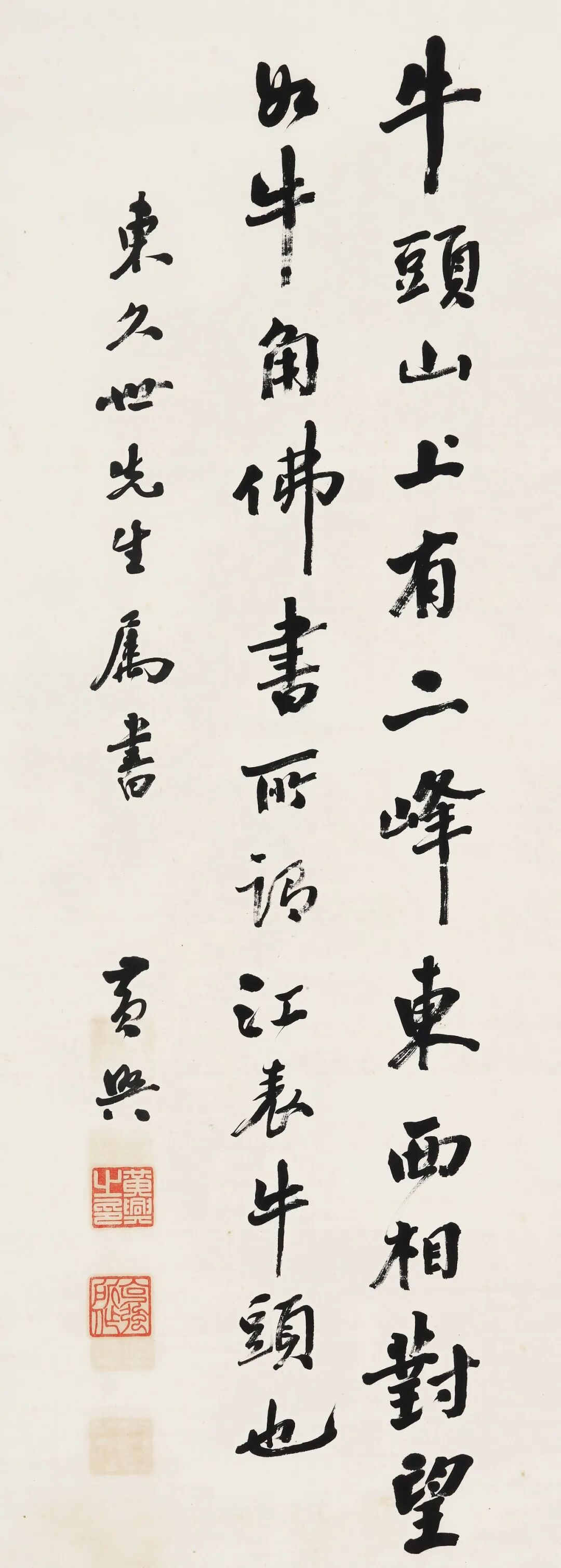 說明:上款人「渭蒲先生」即楊載(1886-1953),字渭蒲,樓下街盧埕人。書畫家,能畫山水。善四體書,又精篆刻及古鑒。