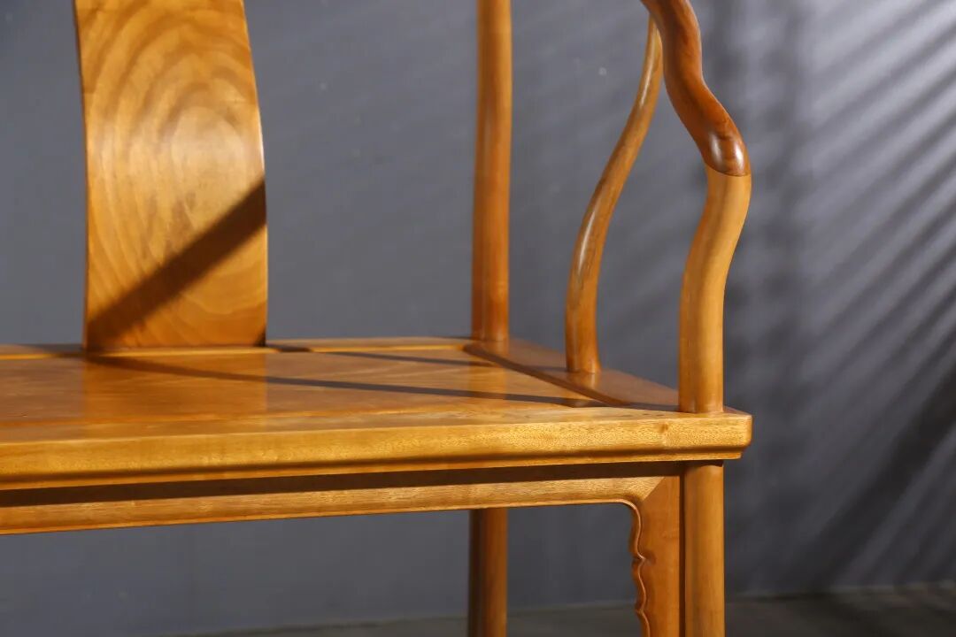 手工打磨至2000目,再经过传统烫蜡,再加上金丝楠木的木性温润,坐用时尤为舒适。