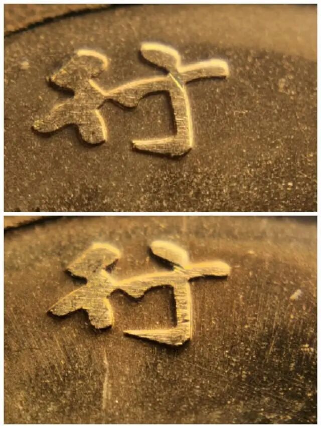 上为短勾行,下为普通版 短勾行只在2002年极个别日期生产,存世量不多,被认为是2002年荷花五角的试机币。 这两种版别之间存在一定联系,一般来说,荷花五角若为短勾行,则必定是开口国,但开口国则不一定是短勾行。