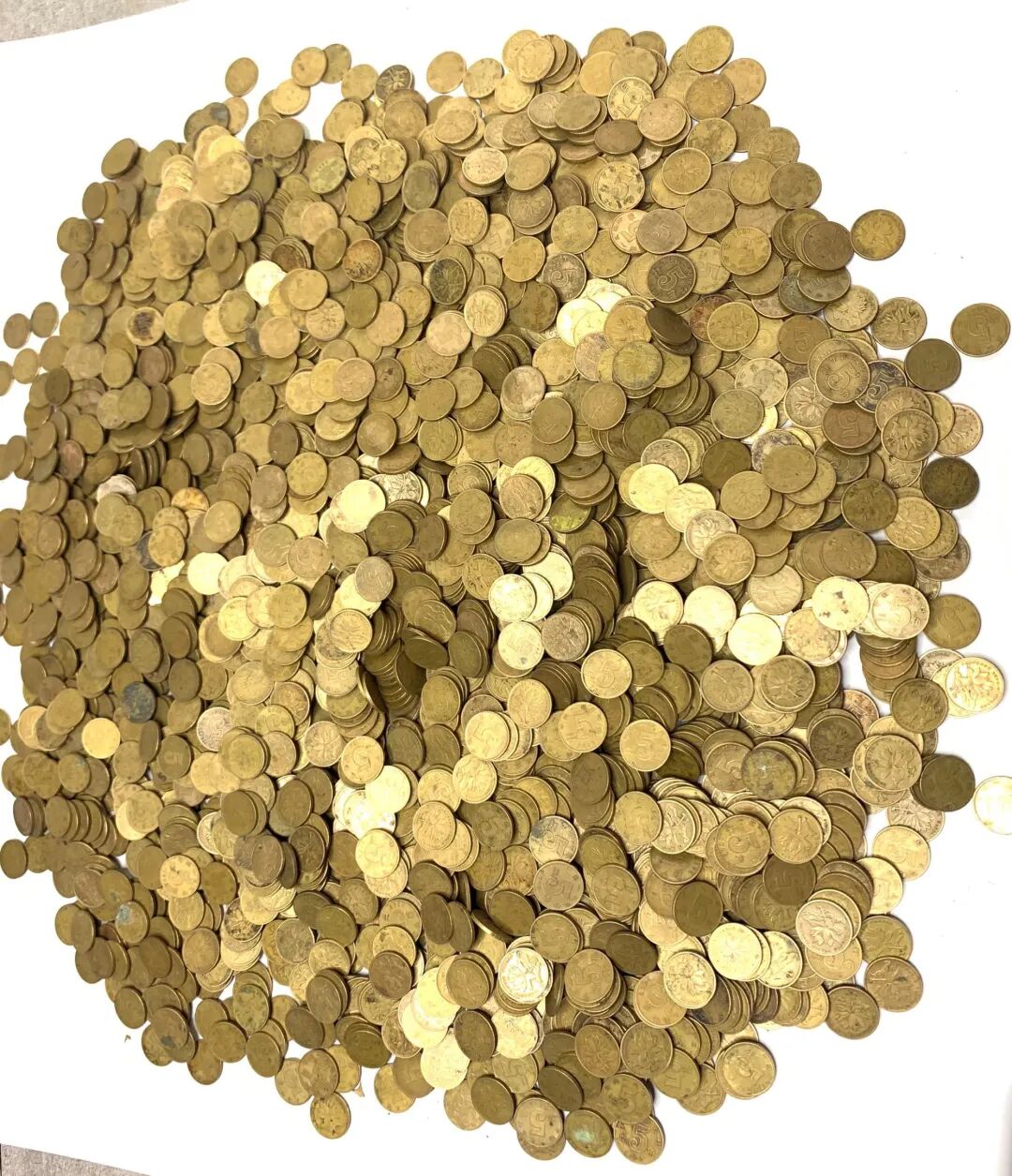成堆的03年荷花五角 其中02年荷花五角是开门币,又有一定几率找到开口国和短勾行,所以收购价比较贵,要1元以上。