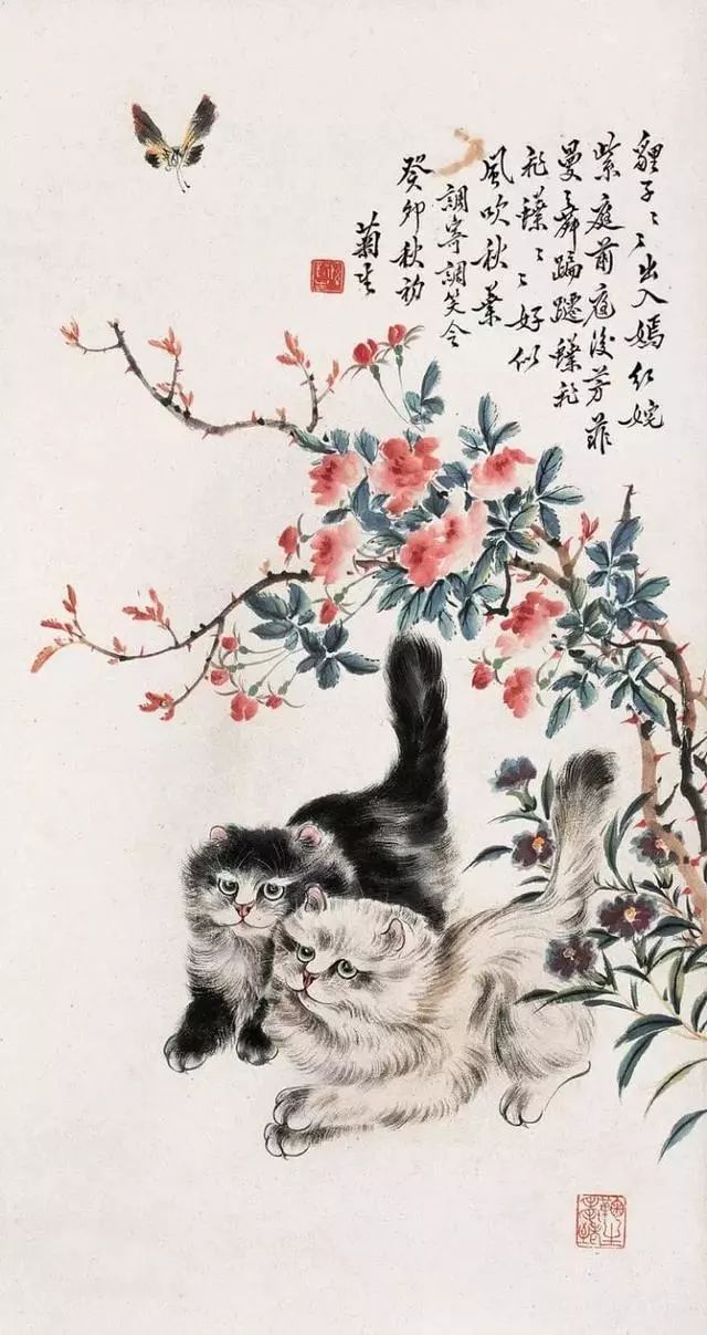 一代画猫名家,开创了上个世纪中国画画猫的一大流派。以画猫著称。其笔下的小猫,栩栩如生,神态逼真,煞是惹人喜爱。![]()