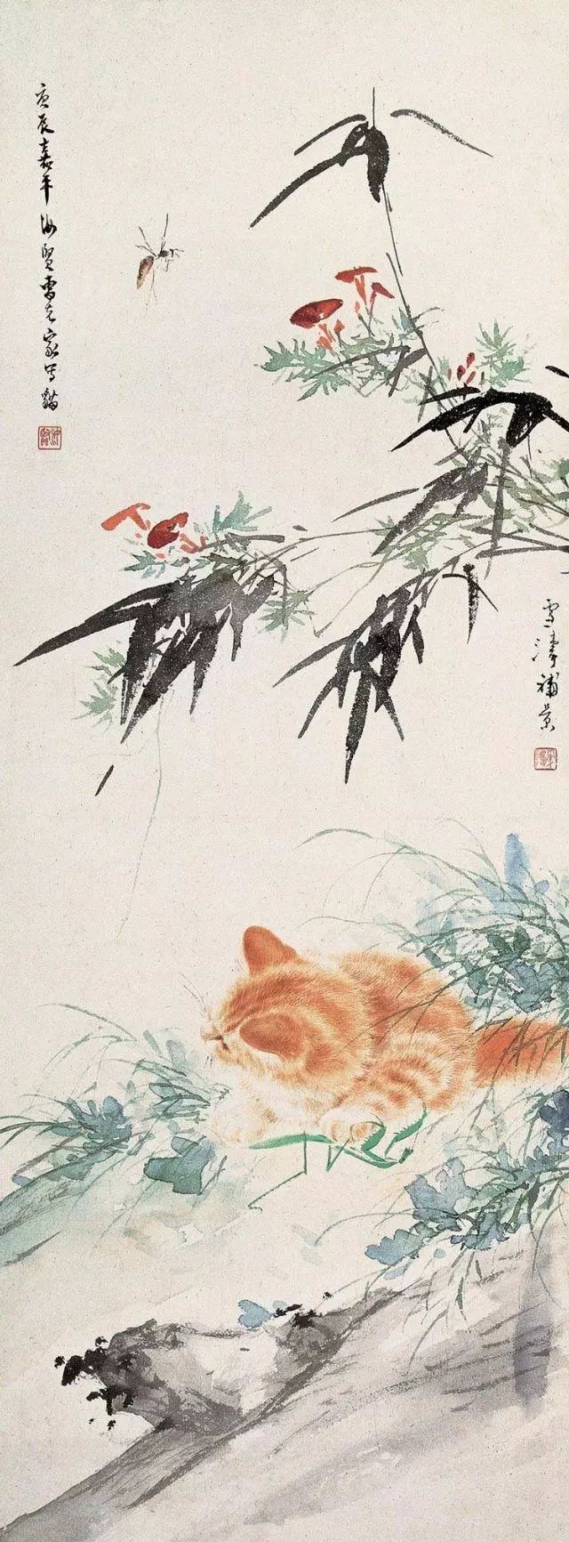 猫是非常有灵性的动物,不仅拥有自己的喜怒哀乐,也会通过不同的动作来表达自己。所以,许多国画大师们对猫情有独钟,乐于养猫、画猫。1、刘奎龄(1885─1967)