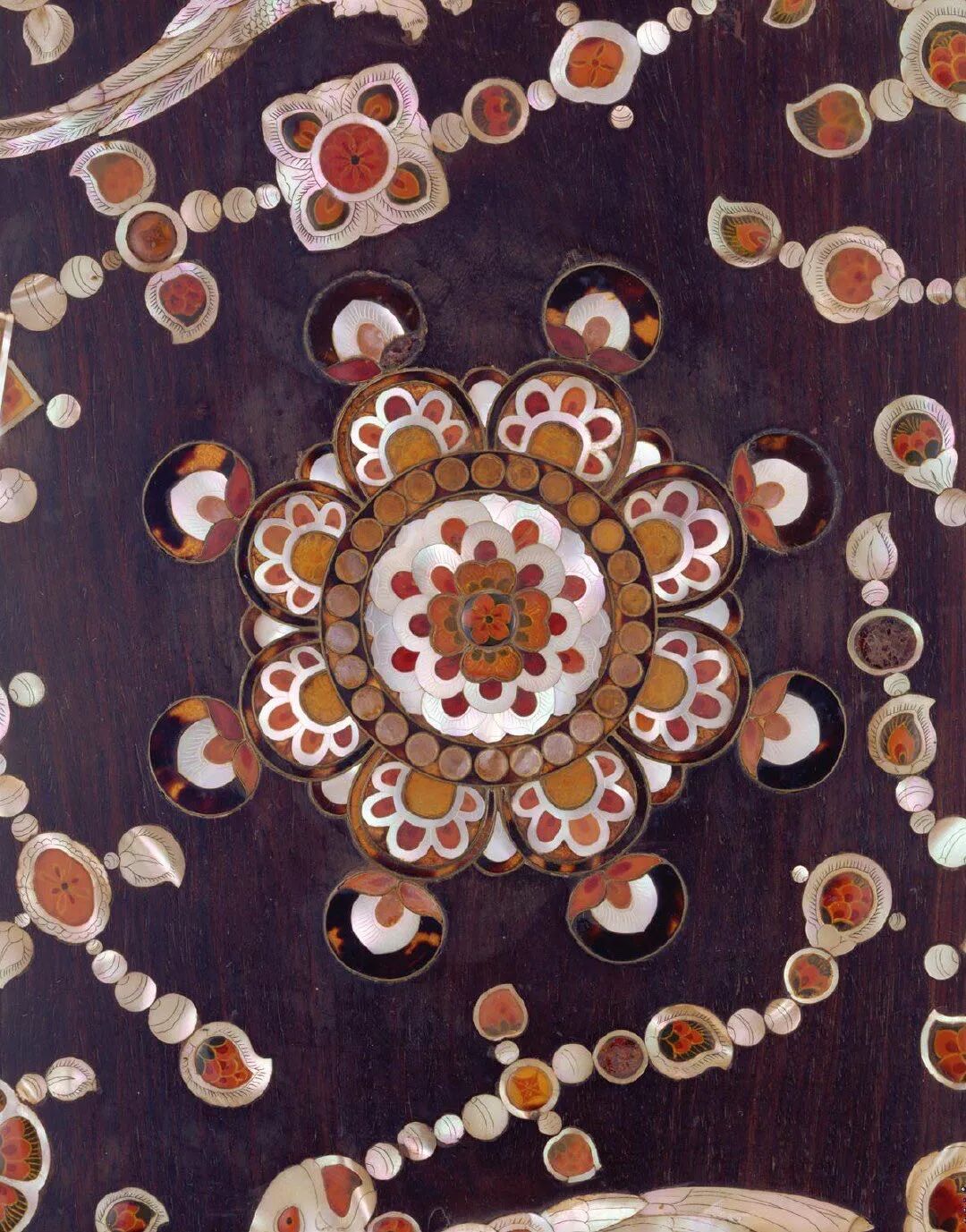 宝相花脱胎于具有佛教象征的莲花,其构成还综合了牡丹、菊花等花卉的特征,造型丰满工整,富丽华贵,是魏晋以来佛教引入中国后在隋唐时期广泛应用的纹饰。