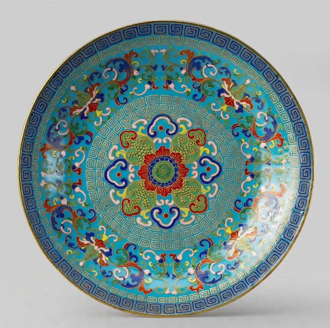 清·乾隆 画珐琅宝相花盘