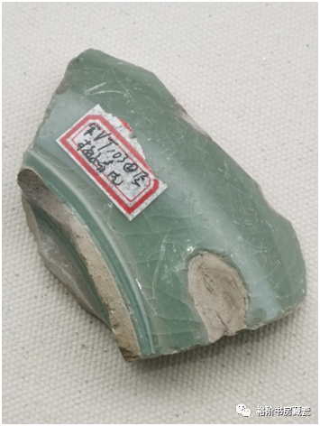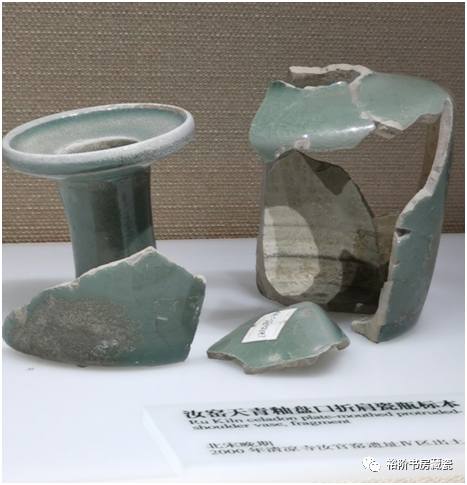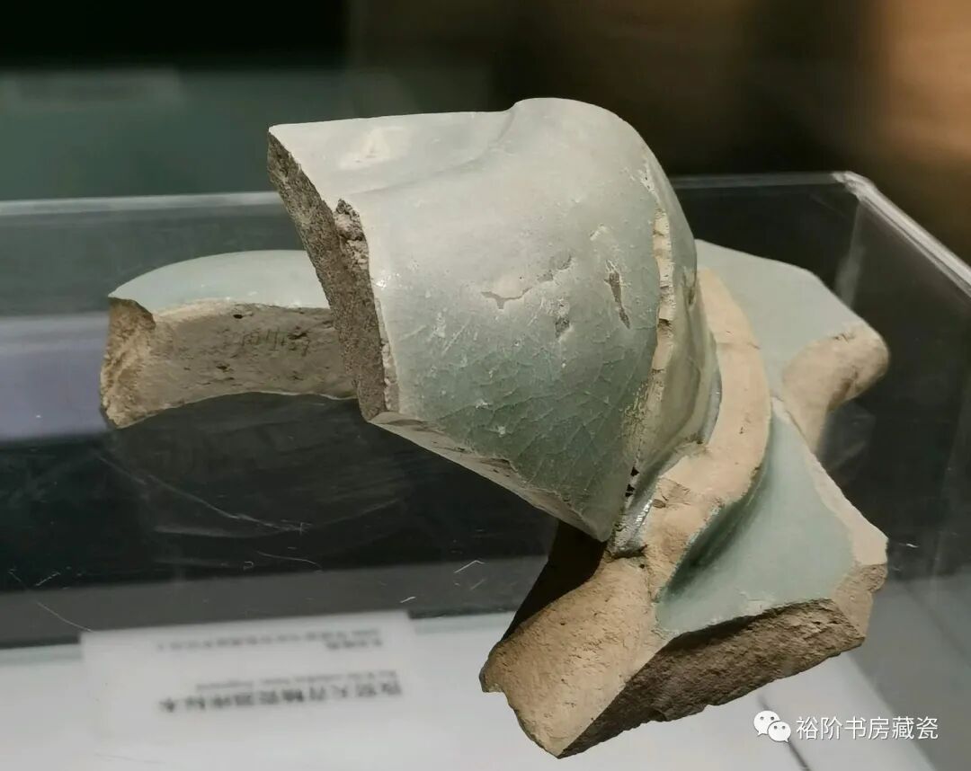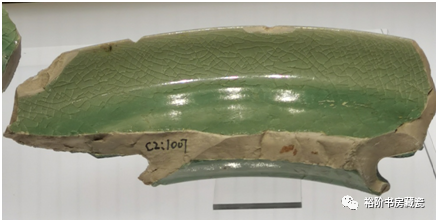 宝丰汝窑博物馆展出天青釉水仙盆残件,腐蚀不明显。这片残片也是原始堆积曾没被后期污染,出土的标本釉色相对较好。