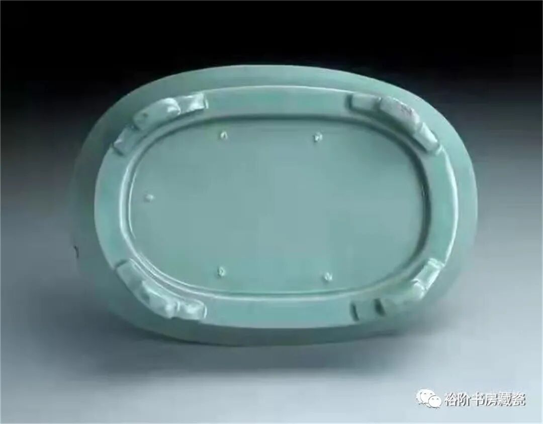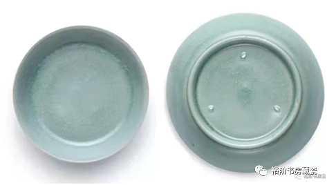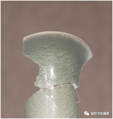 这里有一个问题需要提示一下,汝官窑青瓷在烧制早期是上釉后高温一次烧成,因此敲击胎体多呈“木声”,但是成熟期汝瓷胎体除了强化淘洗、揉练胎土之外还进行了素烧这道工艺,大大强化了汝瓷胎的质量,素烧时难免个别素烧器靠近火塘中心,造成素烧器胎质的“瓷化”现象,因此会有个别的器物敲击时声音清脆,当然从总体上来说汝瓷敲击胎体为“木声”。