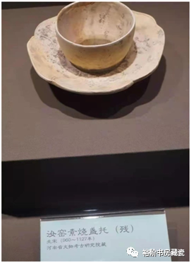 宝丰汝窑博物馆展出汝官窑天青釉器座残件,釉面腐蚀轻微,由于原始堆积层没被后期污染,出土的标本相对较好,胎的断面呈士黄色。
