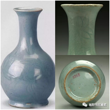 河南博物院收藏的汝官窑青瓷中罕有的天蓝釉刻花鹅颈瓶。