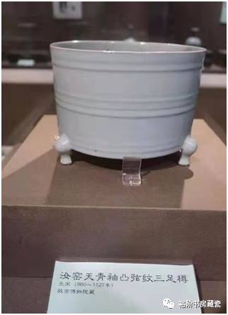 北京故宫博物院收藏的汝窑天青釉凸弦纹三足樽。