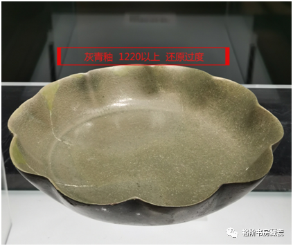 宝丰汝窑博物馆展出的灰青釉花口大盘修复件。