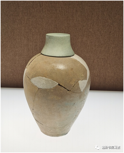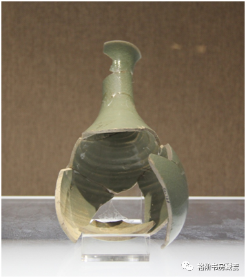 宝丰汝窑博物馆展出汝窑梅瓶修复件,釉面严重腐蚀,分辨不出釉色。
