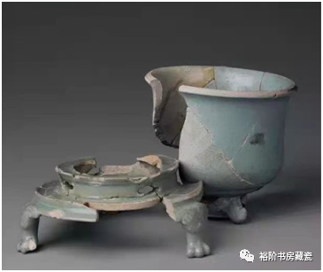 《梦韵天青》一书中的汝窑酒台子修复件,有明显的“碱锈”包裹器身。