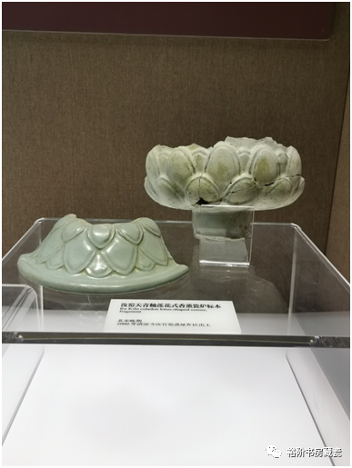 宝丰汝窑博物馆展出的汝窑天青釉莲花式熏炉残件。