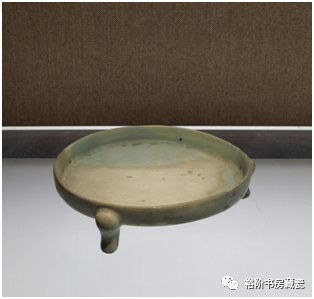 宝丰汝窑博物馆展出汝窑三足承盘,釉面严重腐蚀,分辨不出釉色。