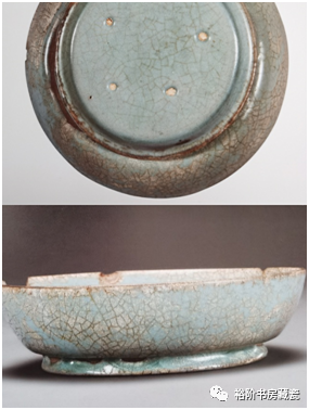 台北故宫博物院收藏的汝窑天青釉无纹水仙盆外底。