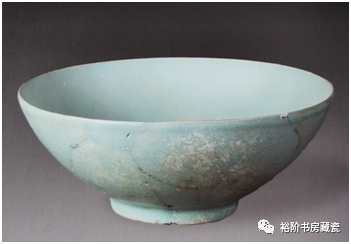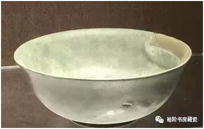 《梦韵天青》一书中的汝窑碗修复件,外口沿有明显的“回头釉”现象。
