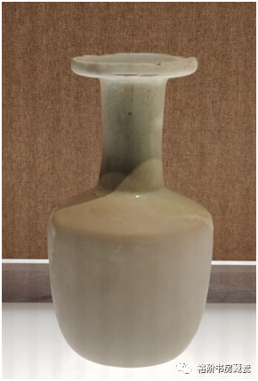 宝丰汝窑博物馆展出的汝窑折肩盘口瓶修复件,整个器身釉色为土褐色。
