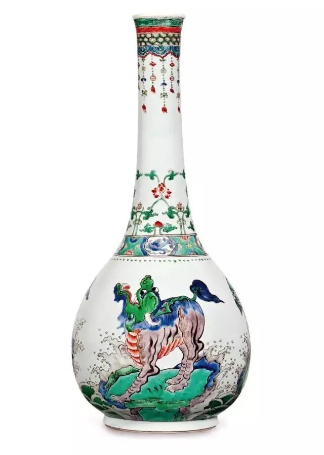 清康熙 五彩瑞兽纹大长颈瓶