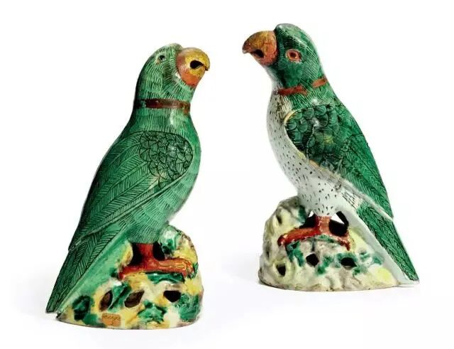 清康熙 五彩鹦鹉一对