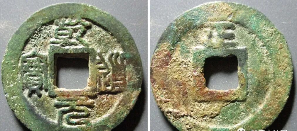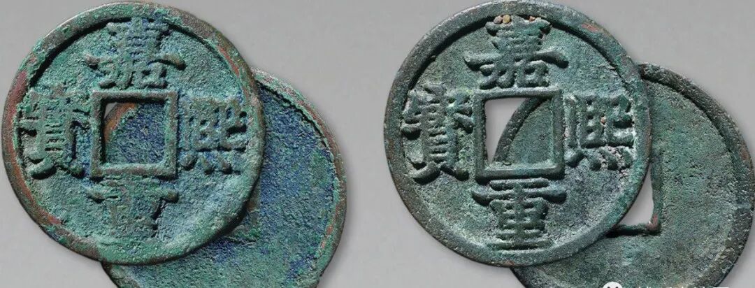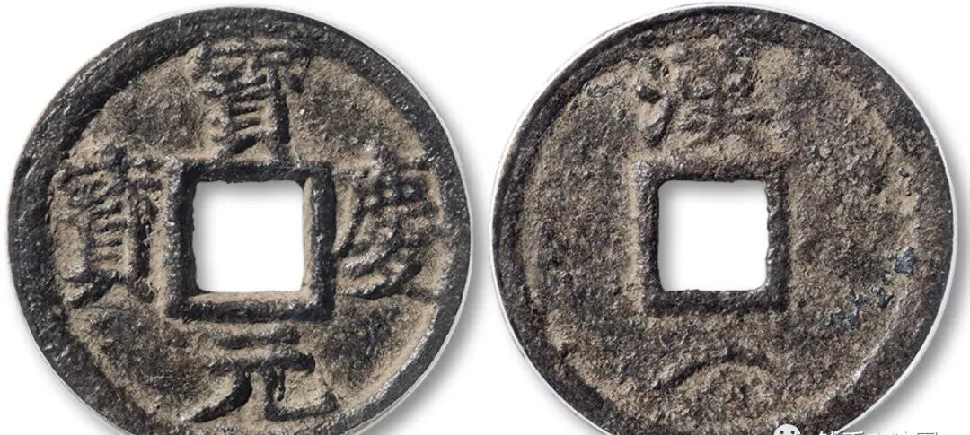 南宋理宗宝庆元年(公元1225)铸,铸期仅7个月,仅见小平、折二、折三铁钱,较为少见。铁钱均罕见,背惠三、背汉月、背汉三都已达到千元以上,铁母极为稀有,皆为名珍。