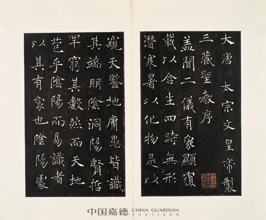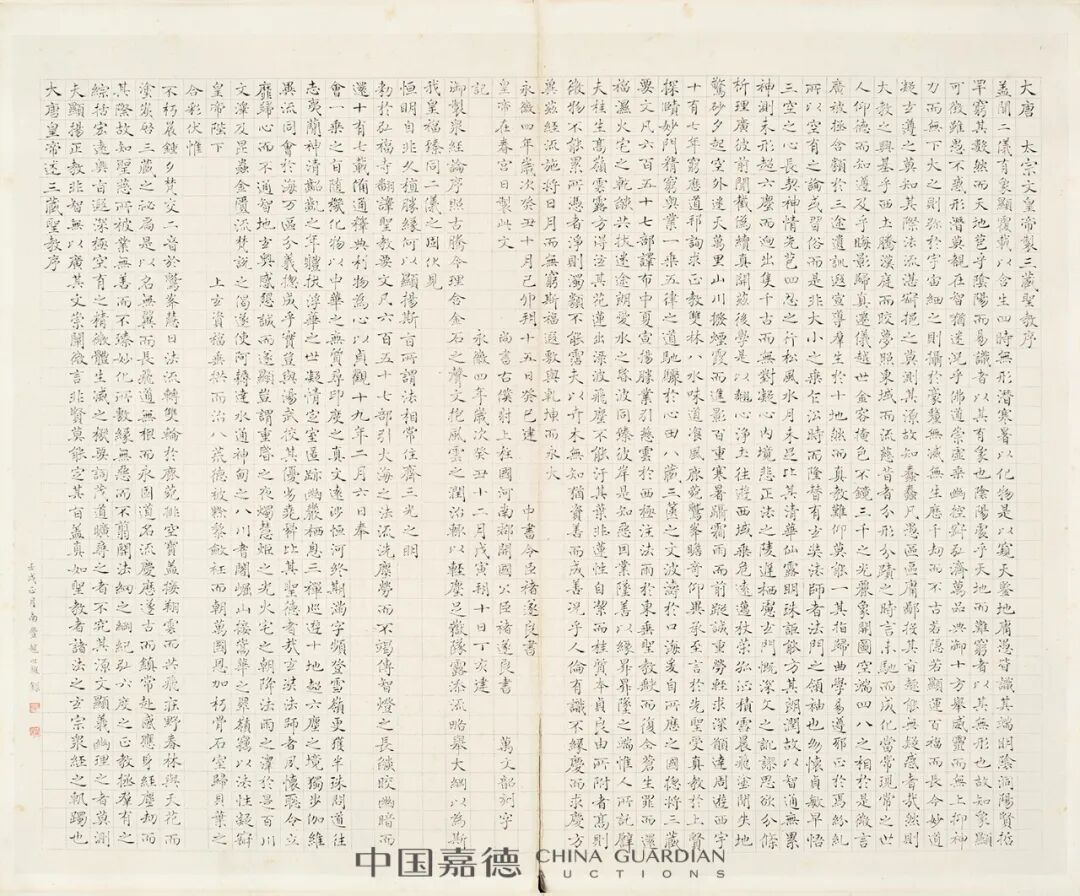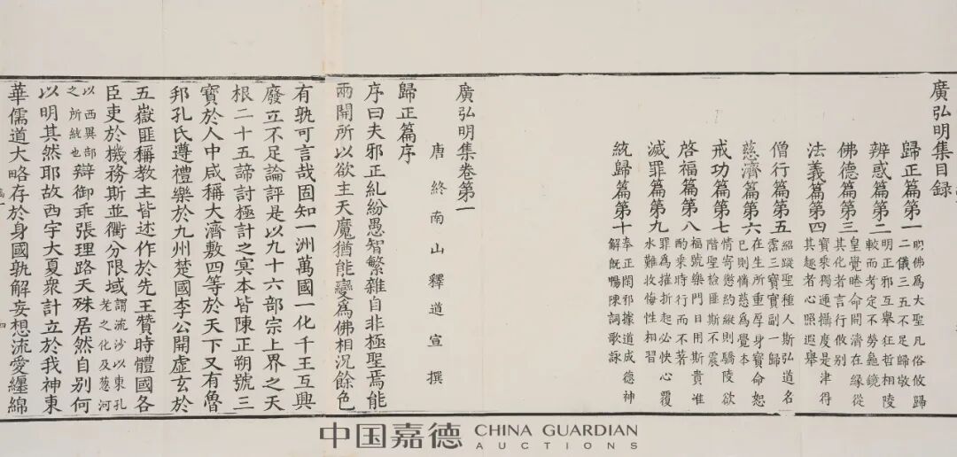 “古籍善本 金石碑帖”专场选取历代善本、内府档案、商周吉金、汉唐碑碣、明清刻帖等门类精品200件,其中古代科举专题、历代宗教典籍专题别具特色。《咸丰皇帝补考优生选拔生钦命考题》为咸丰皇帝御笔,写于咸丰皇帝登基之年,尤为珍贵。清雍正十三年(1735)内府刻《龙藏》本《广弘明集》,清初期内府原装4函40册,部帙浩大,为近年拍卖所罕见。赵世骏等人题跋清初期拓本《唐褚遂良书雁塔圣教序记》,墨色如漆,光可鉴人,赵世骏题跋中称“余学此碑廿有八年,访求最力,然所见之精本,止此而已”。清乾隆间内府初拓本《清钦定重刻淳化阁帖》尽展皇家气象,用开化纸,内府特制御墨所拓,原石咸丰间石毁,故尤为世所重。