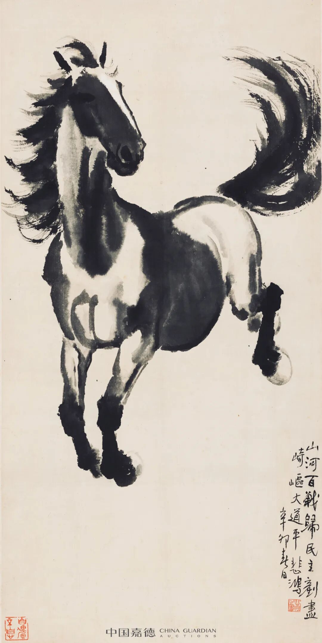题识:山河百战归民主,铲尽崎岖大道平。悲鸿,辛卯春日。