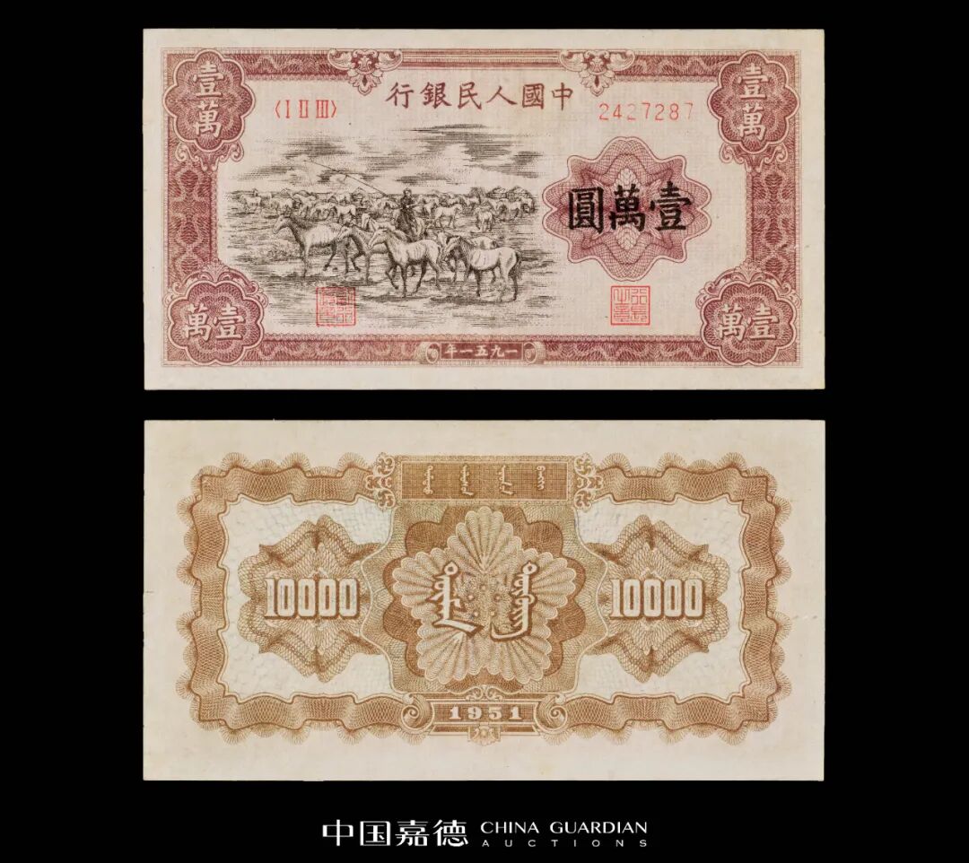 1951年中国人民银行发行第一版人民币壹萬圆牧马