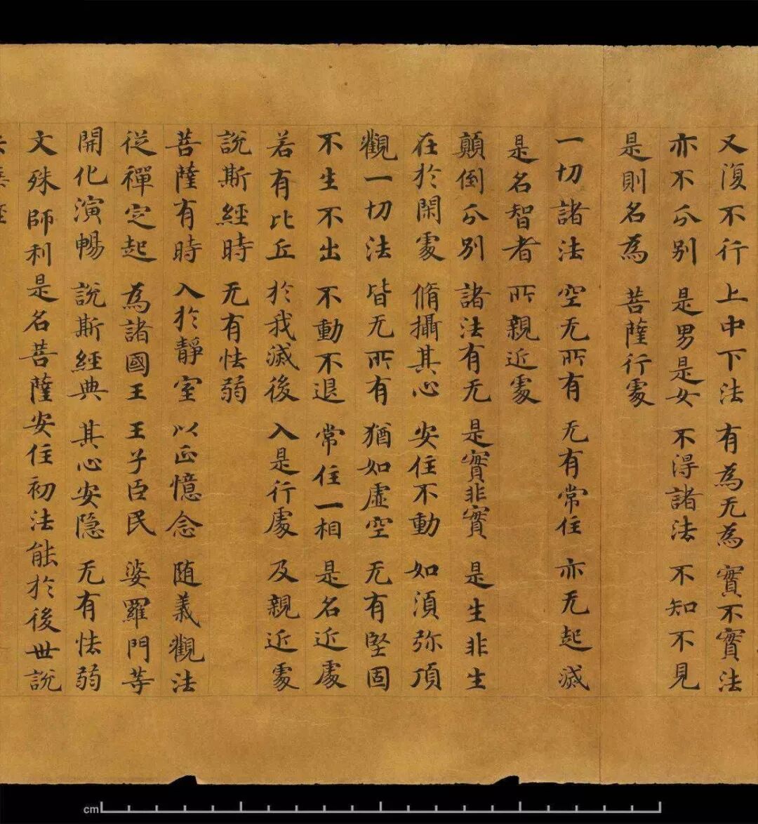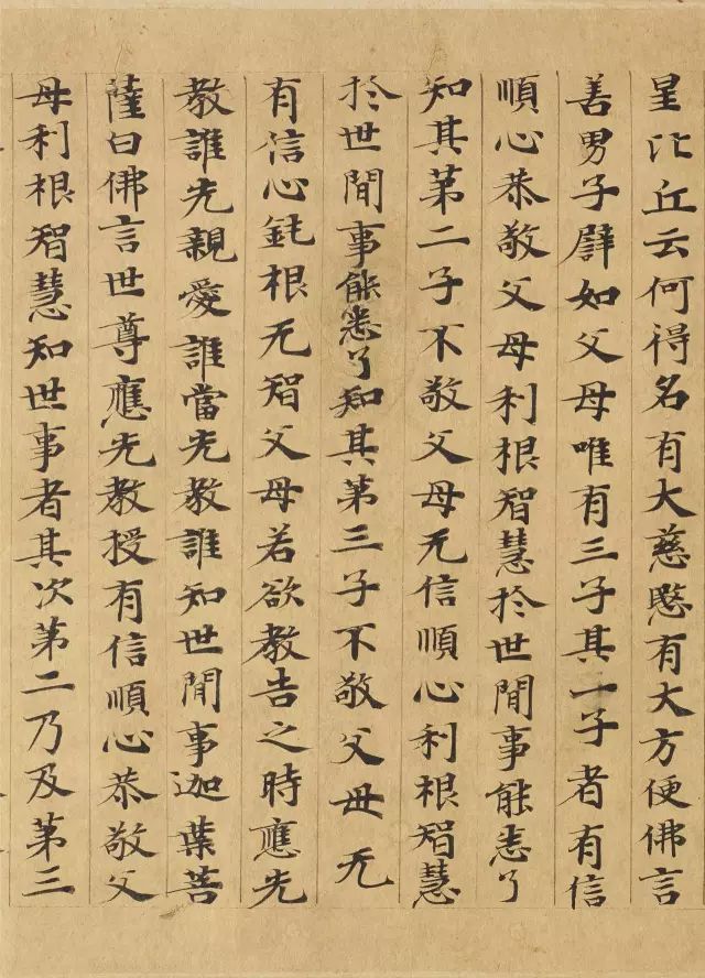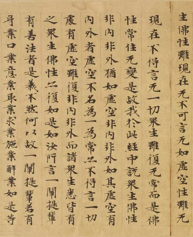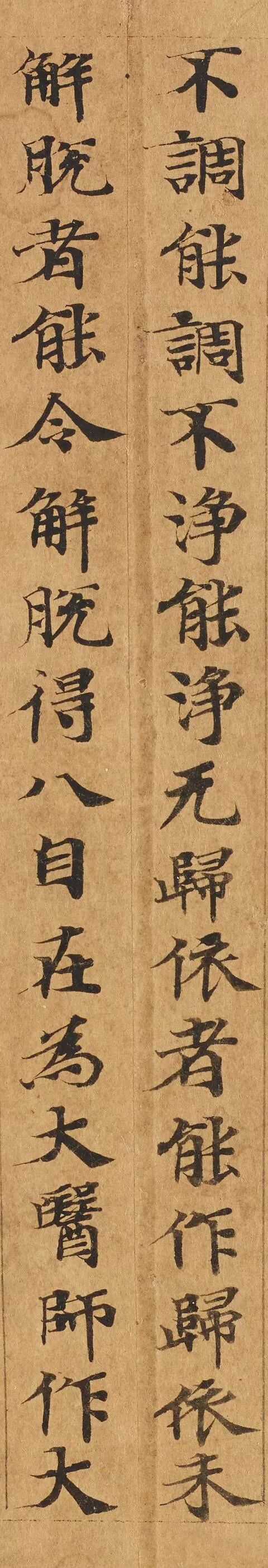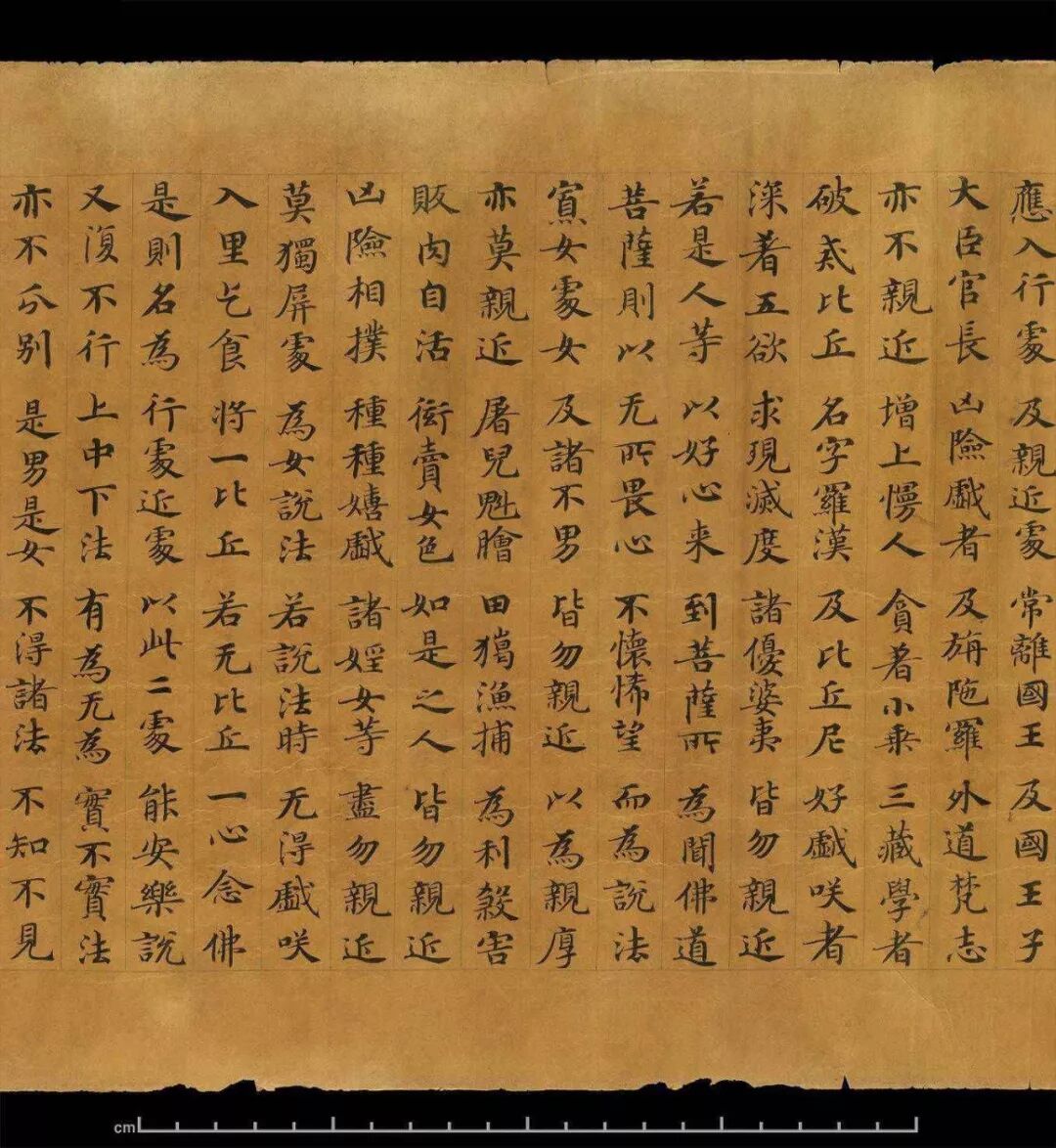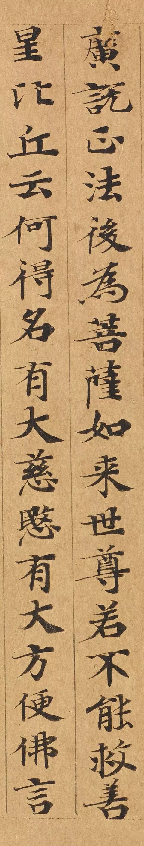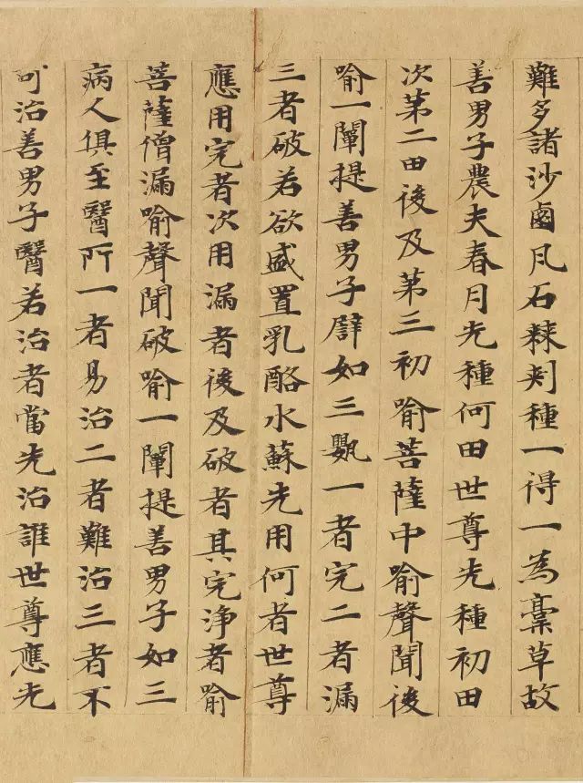 敦煌写经体,就是魏晋时期带有隶书、魏碑味道的楷书,这种写法一直延续了很长时间。为了看起来比较醒目易懂,一般佛经不用草书来写,而是用楷书工工整整地写。