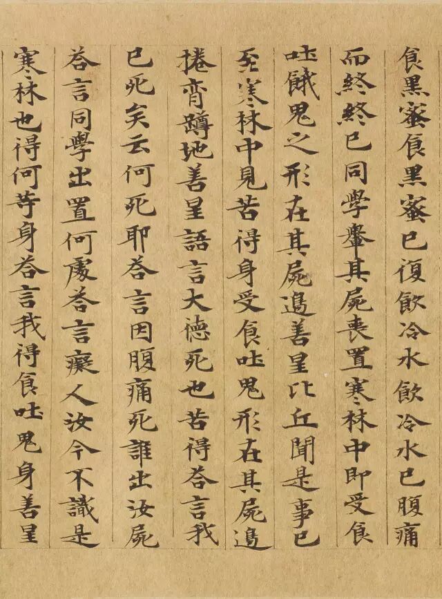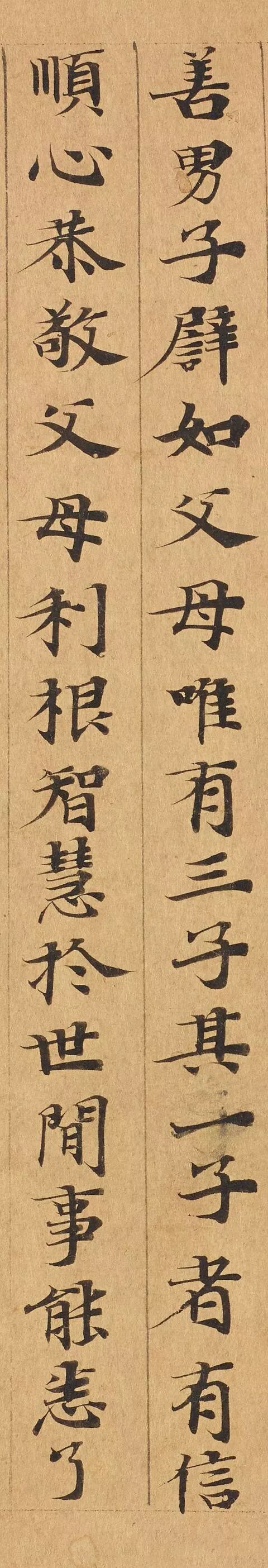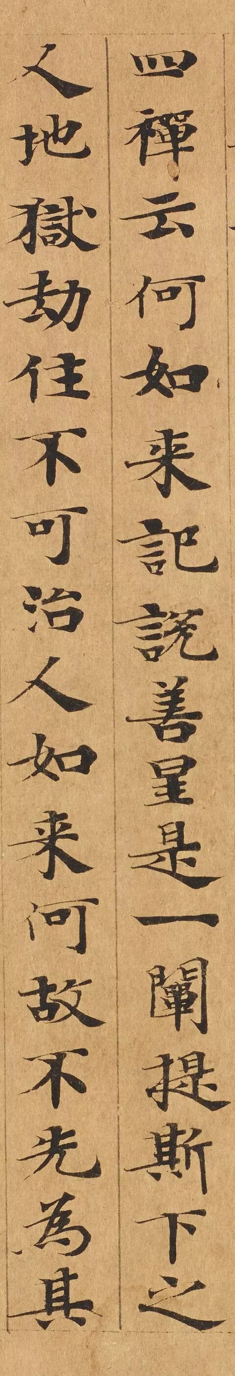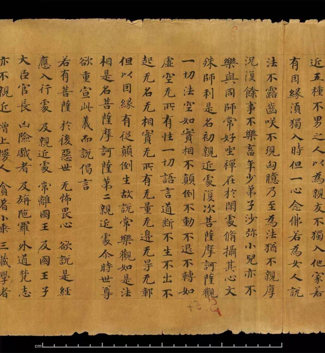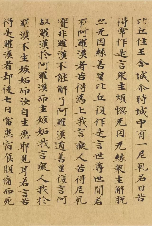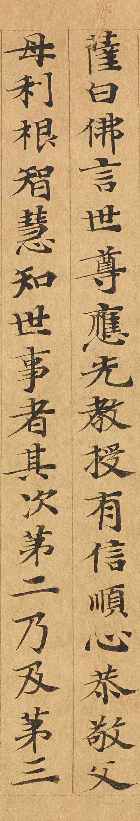 敦煌写经体,就是魏晋时期带有隶书、魏碑味道的楷书,这种写法一直延续了很长时间。为了看起来比较醒目易懂,一般佛经不用草书来写,而是用楷书工工整整地写。