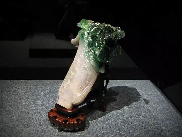 (现存台北故宫的翠玉白菜.除了国立故宫博物院收藏了三颗翠玉白菜,目前在中国大陆也有两颗分别放在北京故宫和天津博物馆,再加上当年孙殿英炸开乾隆慈禧陵墓搜括陪葬宝物时,夺走了慈禧最爱的一颗翠玉白菜,但后来下落不明,因此在世界上就有六颗翠玉白菜,然而样式并不相同。)