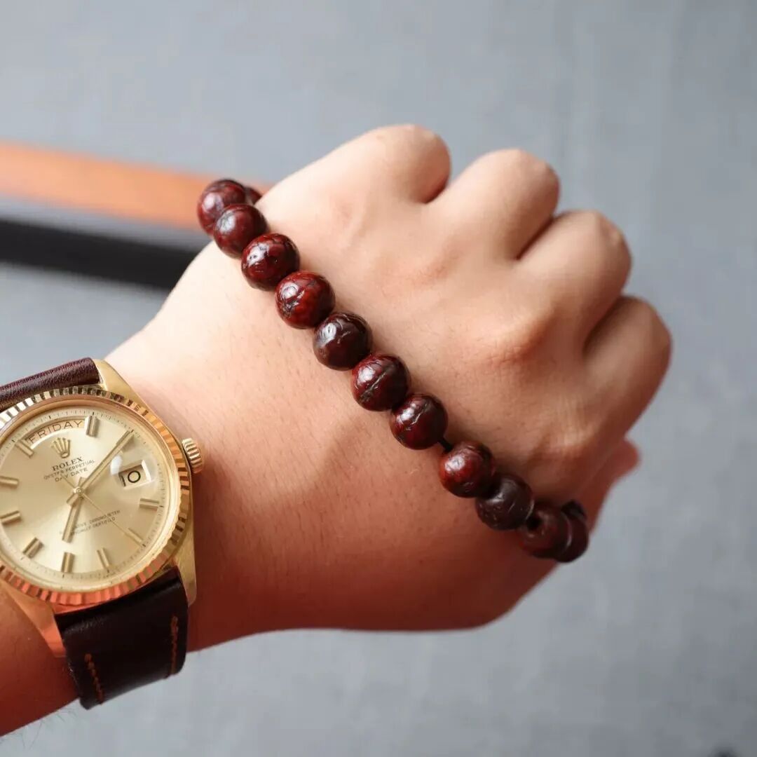 跟星月菩提一样,小小一串,却能玩出百般花样,除了本身的色泽足够惊艳,用各类材料供出来的菩提根,也别有一番风味。