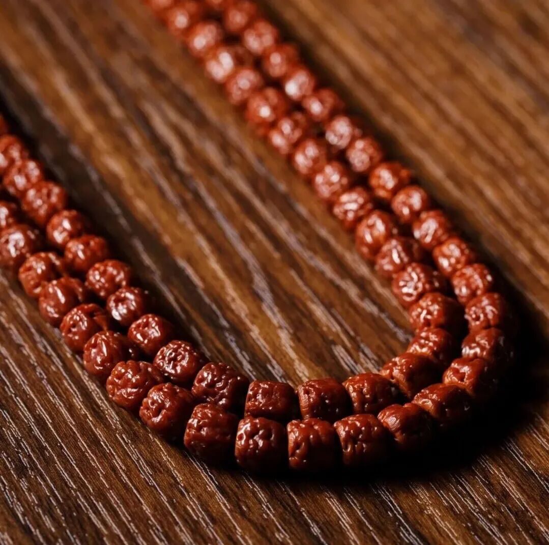 大金刚可以玩单圈素串,小金刚也可以来串108绕手腕,岁月的沉淀最是美丽的洗礼,包浆和红润色泽在阳光下熠熠生辉,无需配饰,就足够亮眼。