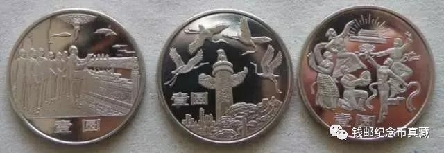 上图为建国35周年精制币套币,下图为其中“华表”币普制币,币面有否抛光差别很大,一望便知,精制币图案更清晰、饱满。