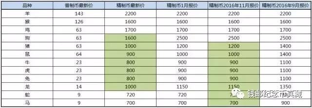 3、 从价格走势看,去年四季度以来精制币主要经过两波下跌,与流通纪念币的价格走势相似。各精制生肖纪念币的平均跌幅30%左右,这样的跌幅,与普通纪念币相似。但也有没有下跌的,如精制羊、精制猴、精制鸡。