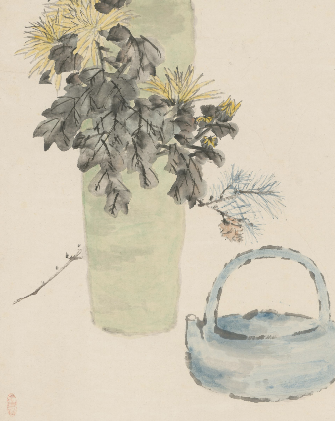 ▲《瓶菊图轴》(局部)清 虚谷 故宫博物院藏