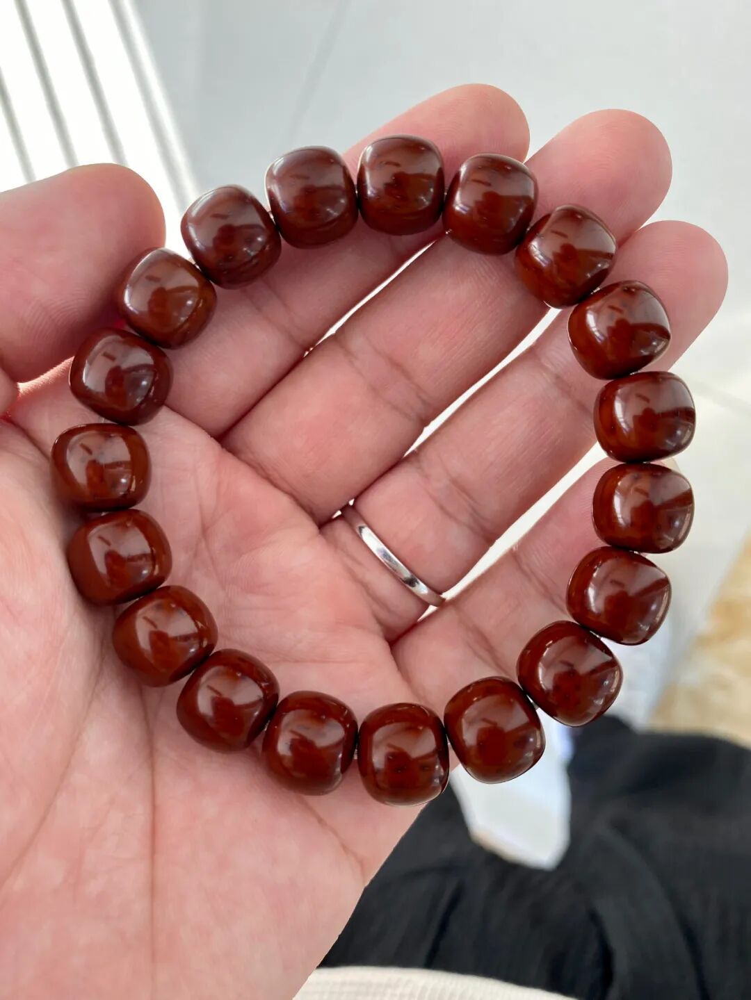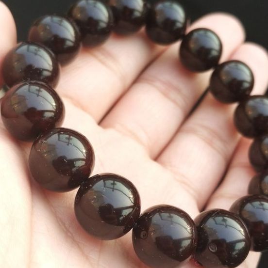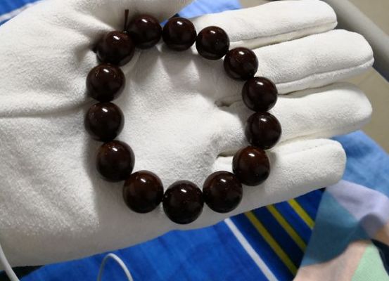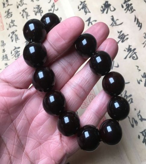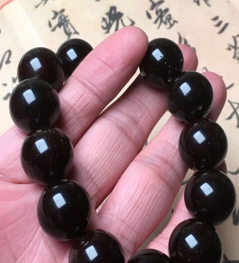 这条紫金鼠光珠刚入手的时候,能看到很明显的棕线,棕线粗,色差大,但是盘过三年之后,却盘出了玻璃底,非常漂亮。很多玩友说,看到这条手串,不知道的人还以为是小叶紫檀。
